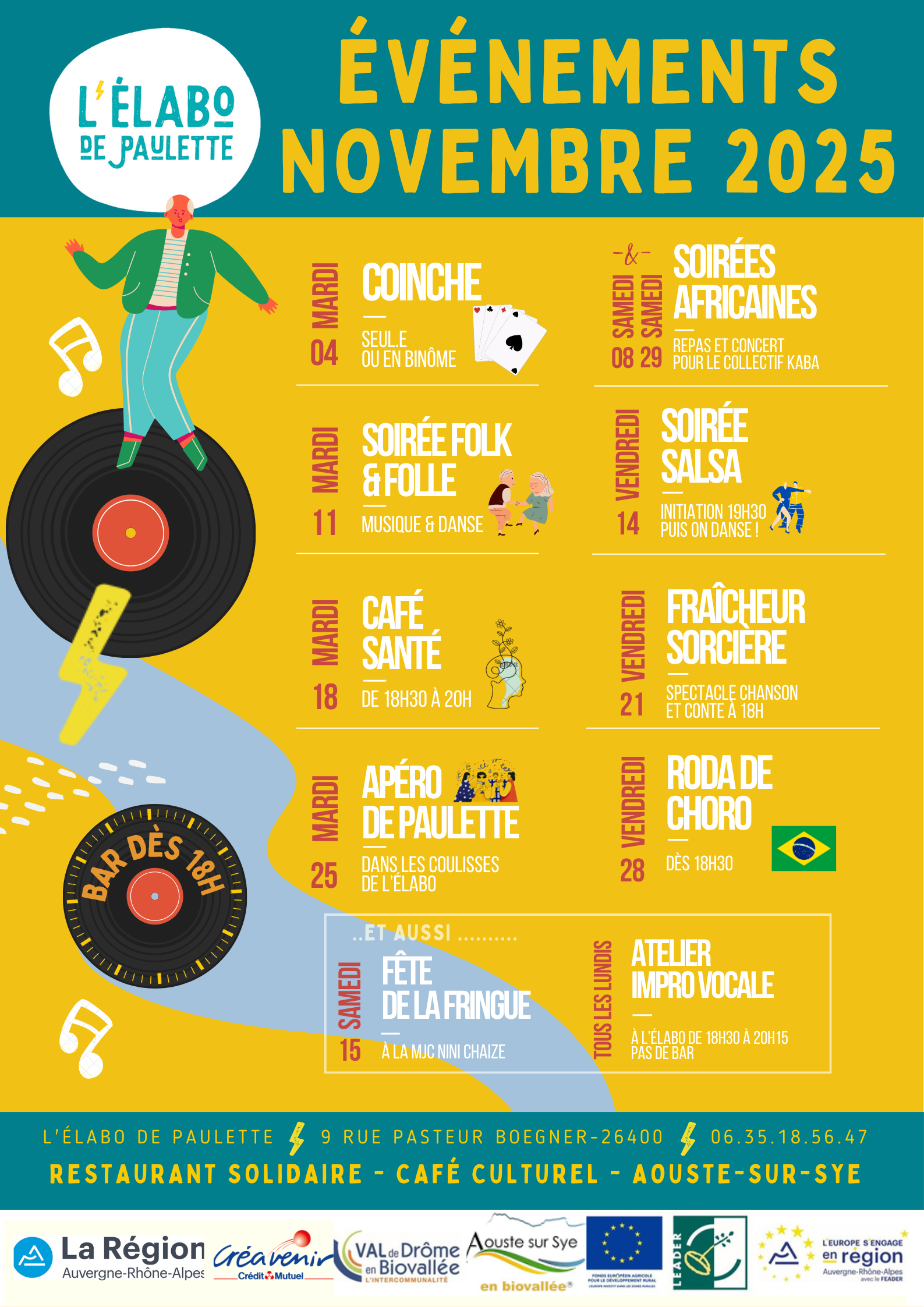 Chaque semaine, nous organisons des soirées culturelles variées : concerts, projections, spectacles, salsa, karaoké, coinche et plus encore. Les entrées sont souvent à prix libre, et une petite restauration à prix réduit est disponible.