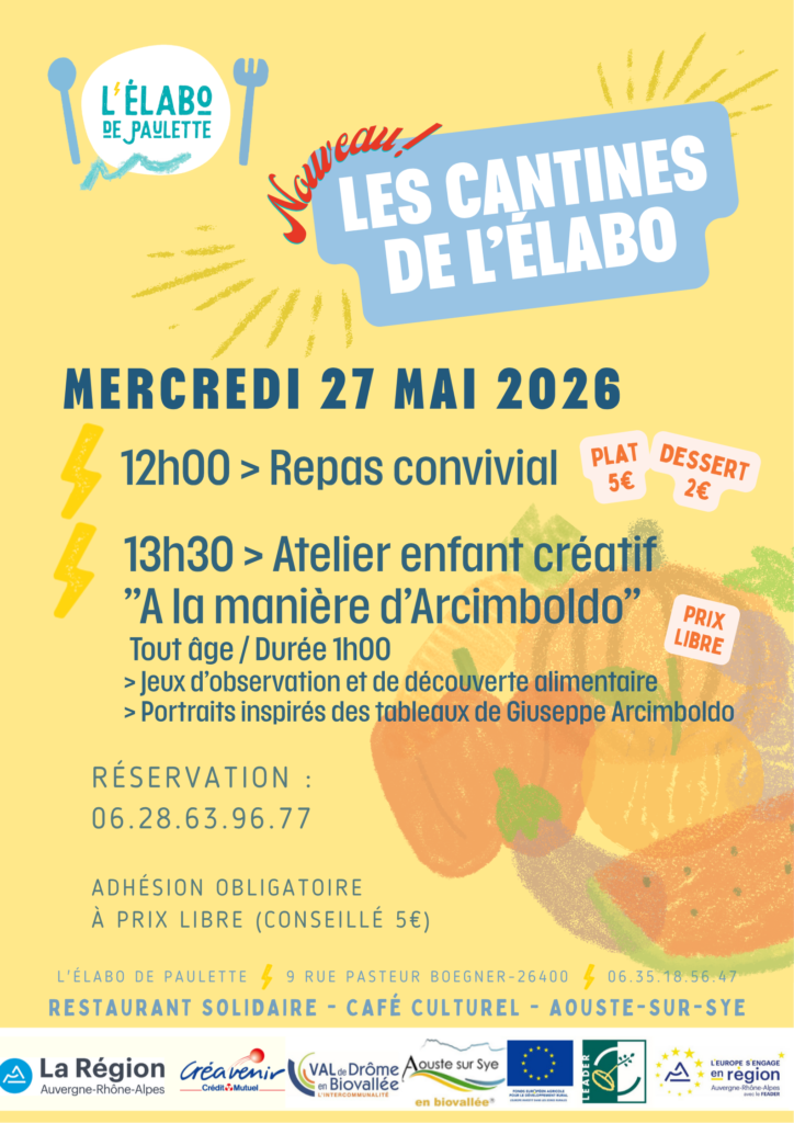 Les cantines de l’Elabo : repas suivi d’un atelier enfant